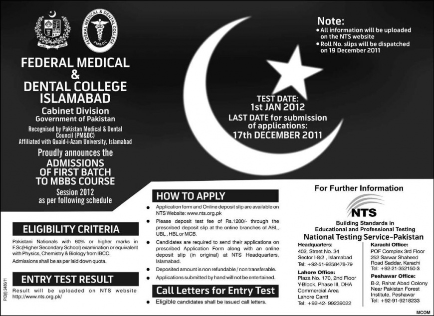 Admission open Federal Medical and Dental College IslamabadClick image for larger version