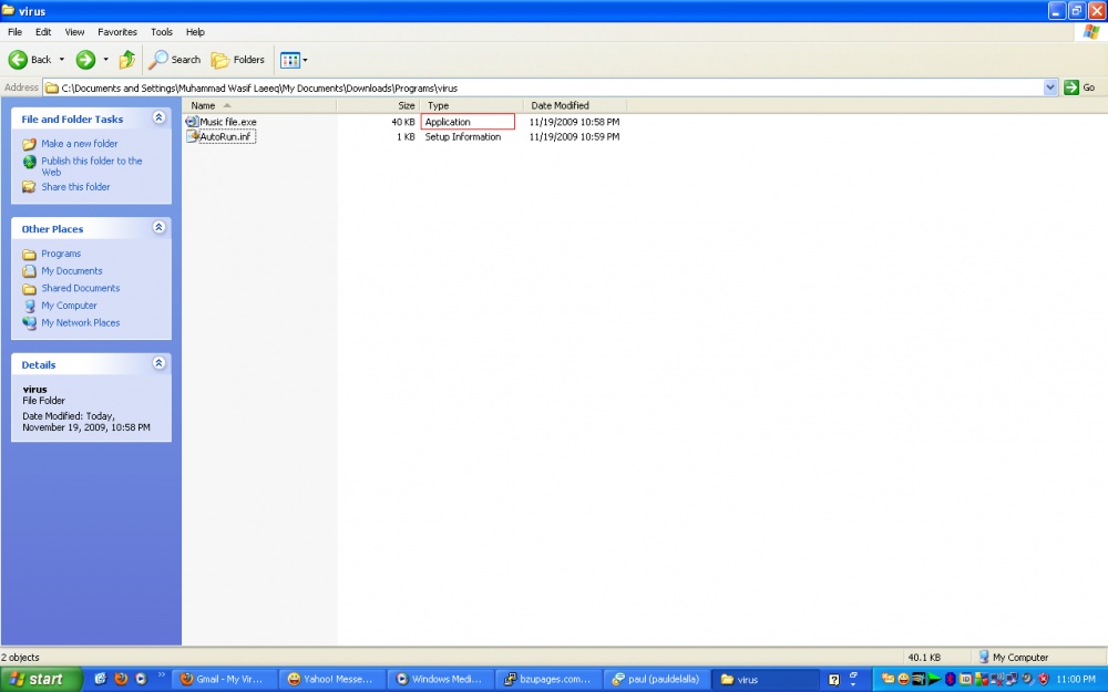 ok, now see the attached image ... the virus file has icon of Media Player File ... Victim will think that it is a music file (chalo yeh wala song hi sun laitay hain) ...