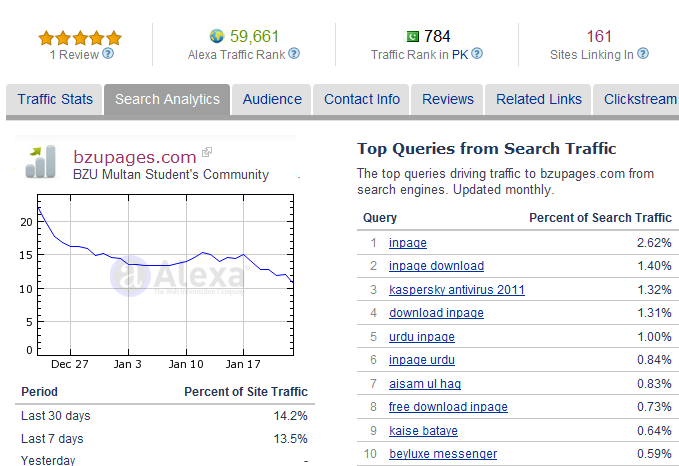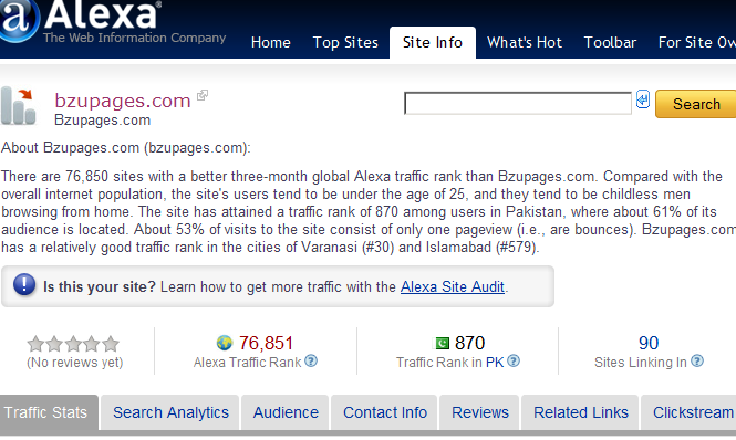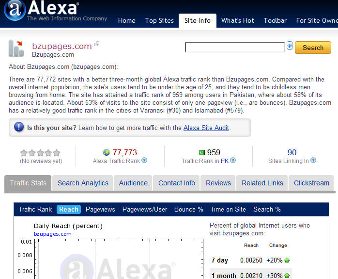 matlab pakistan main dunia ki jitni bhi websites open ho sakti hain hain (All WWW), unko ranking ki jaye tu, bzupages ki ranking 993 thay....:th_free-innocent-sm |