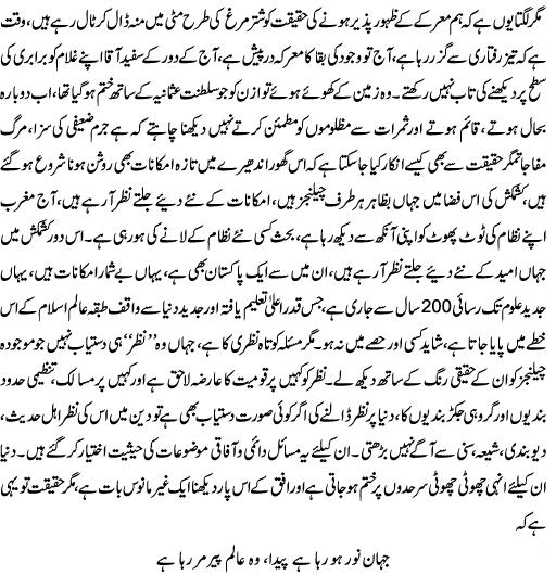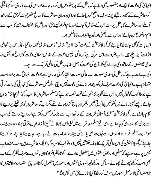 Re: Globalisation (Kashif Hafeez Siddiqui) main khud bhi is baat ko manti hoo jis per writer nay nishandahi ki hai k Islam k dushmano ne musalmano ko kai firqon main baant diya hai ye dushman hamesha divide and rule ka game khailtay hain or muslims najanay kio hamesha apnay iman ko kamzor ker k in islam dushman anaasir k isharon per nachtay hain Bahaisiat musalman hamen apni Safen mazboot rakhni hongi Allah Per iman hamaray amal se zahir hona chahiye |