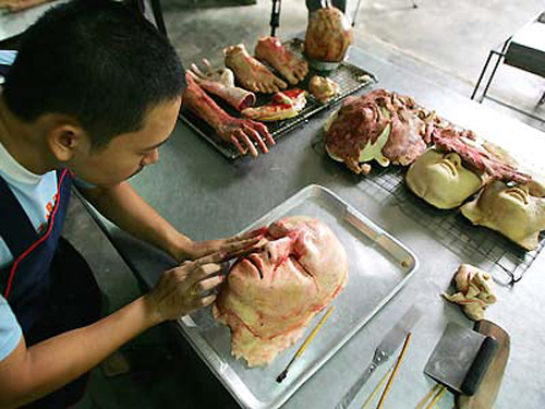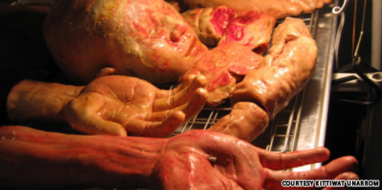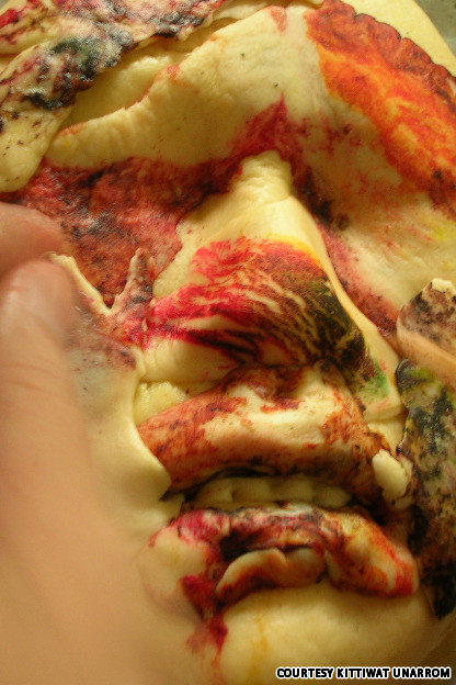 Bread Shaped as Human Body Parts... 6 Attachment(s) Kittiwat Unarrom, a talented artist from Thailand, uses his skills to create unique loafs of bread shaped like various human body parts. Kittiwat has experimented with many art forms, from painting to sculpting, but it wasn’t until he had to return home and take over the family bakery that he discovered his true passion – making grotesque-looking bread. Since he first started out, in 2006, he has made a name for himself, and his Body Bakery has become a popular tourist attraction. The gruesome bread Kittiwat Unarrom makes is incredibly realistic looking, but to achieve this level the artist spent many hours studying human anatomy and visiting forensic museums. At the same time, he found it important to make his bread delicious as well, because he didn’t want his art to be just an object of art, he wanted audiences to feel involved. His first batch was pretty good, but it wasn’t delicious, so he kept improving the recipe until he got the taste just right. When he first started working at his family’s bakery, he was convinced he wasn’t going to get to practice his art anymore, but as soon as he discovered dough, he realized the possibilities are endless. Every day he works with the dough he gets new ideas about new edible art projects, and he believes art shouldn’t be limited to art galleries and museums. His body-part bread looks just like the real thing, but he admits it’s pretty strange eating someone’s head, piece by piece, and looking in their eyes at the same time. In case you were thinking of going to Thailand for a piece of human-looking bread, forget about it, Kittiwat’s bakery is only selling normal bread, at least for the moment. |