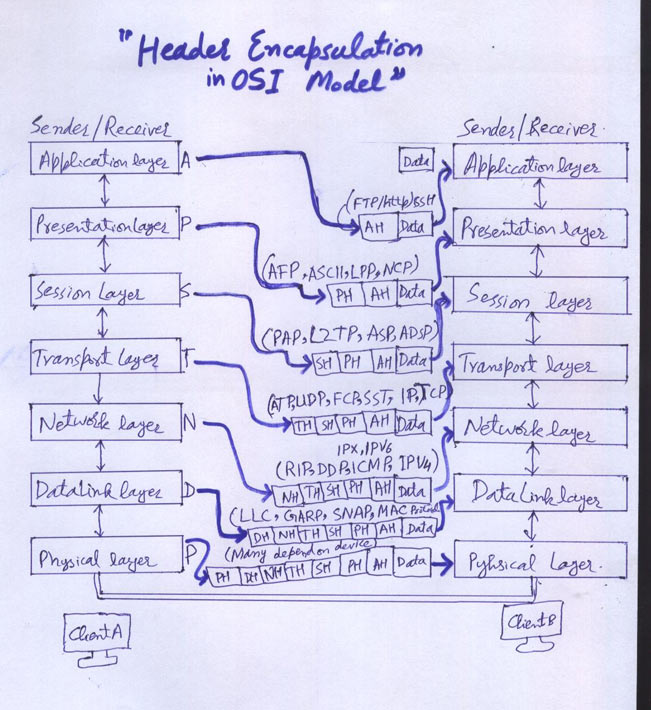 Assignment #1; Header Data Encapsulation in OSI Model 1 Attachment(s) The OSI model presents a standard data flow architecture, with protocols specified in such a way that the receiving layer at the destination computer receives exactly the same object as sent by the matching layer at the source computer. Figure A.2 shows the OSI model data flow. Attachment 20080 The sending process passes data to the application layer. The application layer attaches an application header and then passes the frame to the presentation layer. The presentation layer can transform data in various ways, if necessary, such as by translating it and adding a header. It gives the result to the session layer. The presentation layer is not aware of which portion (if any) of the data received from the application layer is the application header and which portion is actually user data, because that information is irrelevant to the presentation layer's role. The process of adding headers is repeated from layer to layer until the frame reaches the data link layer. There, in addition to a data-link header, a data-link trailer is added. The data-link trailer contains a checksum and padding if needed. This aids in frame synchronization. The frame is passed down to the physical layer, where it is transmitted to the receiving computer. On the receiving computer, the various headers and the data trailer are stripped off one by one as the frame ascends the layers and finally reaches the receiving process. Although the actual data transmission is vertical, each layer is programmed as if the transmission were horizontal. For example, when a sending transport layer gets a message from the session layer, it attaches a transport header and sends it to the receiving transport layer. The fact that the message actually passes through the network layer on its own computer is unimportant. |