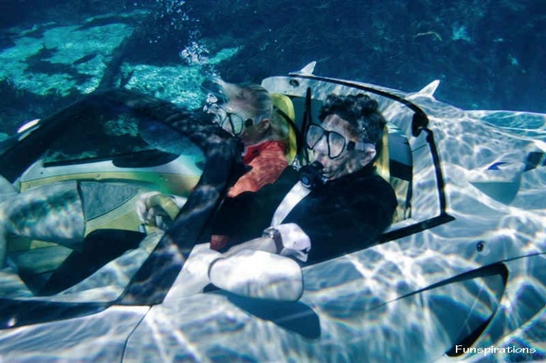 Squba (World's First Swimming Car)þ look at the shots... 17 Attachment(s) Squba - World's First Swimming Car!!! Three decades ago James Bond (then enacted by British star Roger Moore) wowed the world with a car that could 'fly' under water in the movie The Spy Who Loved Me. Only, it was animation and not an actual scene. ShotsBut Frank M Rinderknecht, the 52-year-old automobile visionary and boss of Swiss automaker Rinspeed, has turned a dream into reality with his 'sQuba.' Rinspeed sQuba is the most exciting thing at this year's Geneva Motor Show and is creating many a ripple. SQuba is the world's first real submersible car that can 'move like a fish underwater'. It can dive up to 32.8 feet (10 MT) below the surface of the water and can move at a sedate 1.8 miles per hour. The sQuba has an open cockpit for 'safety reasons' (so that people can get out easily anytime in case of an emergency). The occupants of the car have to breathe compressed air through built-in scuba masks. SQuba is an electric car that uses rechargeable lithium-ion batteries and 3 electric motors for propulsion.. It is a zero-emission car as documented by the rotating license plate in the rear. It produces no exhaust emissions. The 'sQuba's' filling station is the water reservoir.? It is no surprise that the vehicle features powerful yet energy-saving LED lighting technology. The first car that could drive underwater was Quandt's Amphibicar, built in 1968. Only 3,878 were produced but many are still being driven on roads. Then Gibbs Technologies came up with Gibbs Aquada in 2004 which Virgin boss Richard Branson used to break the speed record for crossing the English Channel . However, the sQuba seems to be the most exciting of them all. To drive on the roads, the sQuba 'relies on a stainless coil-over suspension from KW automotive and large Pirelli tires mounted on custom-made forged light-weight wheels from AEZ with 17- and 18-inch diameters.' Technical data Measurements Length ----- 3'785 mm Width ----- 1''940 mm Height ----- 1'117 mm Wheelbase ----- 2?300 mm Track front ----- 1?470 mm Track rear ----- 1?520 mm Ground clearance ----- 130 mm Empty weight ----- approx. 920kg Performances Top speed ----- > 120 km/h Acceleration 0-80 km/h ----- 7.1 sec Water speed ----- > 6 km/h Under water speed ----- > 3 km/h Dive depth ----- 10 m Engines Street ----- Electric Power output ----- max. 54 kW at 4'500 /min Torque ----- 160 NM at 1'500 /min Water - Stern propellers ----- Electric Power output ----- 2 x 800 W Diving - bow jet drives ----- Electric Power output ----- 2 x 3.6 kW Rotinor Batteries ----- Lithium-Ionen Voltage ----- 6 x 48 Volt Propulsion Power train ----- Rear wheel drive Gearbox ----- R - N - F Suspension Chassis ----- Steel Body panels ----- Carbon Nano Tubes Seating capacity ----- 2 Front suspension ----- Double wishbone Rear suspension ----- Double wishbone Dampers/springs ----- KW automotive Steering ----- Rack & pinion Tyres Front tyres ----- Pirelli P Zero 205/40 R17 Front wheels ----- AEZ 7.5 x 17' Rear tyres ----- Pirelli P Zero 225/40 R18 Rear wheels ----- AEZ 8 x 18' Miscellaneous Air supply ----- 1 x 15 liter + 1 x 18 liter ScubaPro Laser scanner ----- Ibeo Lubricants ----- Motorex Attachment 2085 Attachment 2086 Attachment 2087 Attachment 2088 Attachment 2089 Attachment 2090 Attachment 2091 Attachment 2092 Attachment 2093 Attachment 2094 Attachment 2095 Attachment 2096 Attachment 2097 Attachment 2098 Attachment 2099 Attachment 2100 Attachment 2101 |
