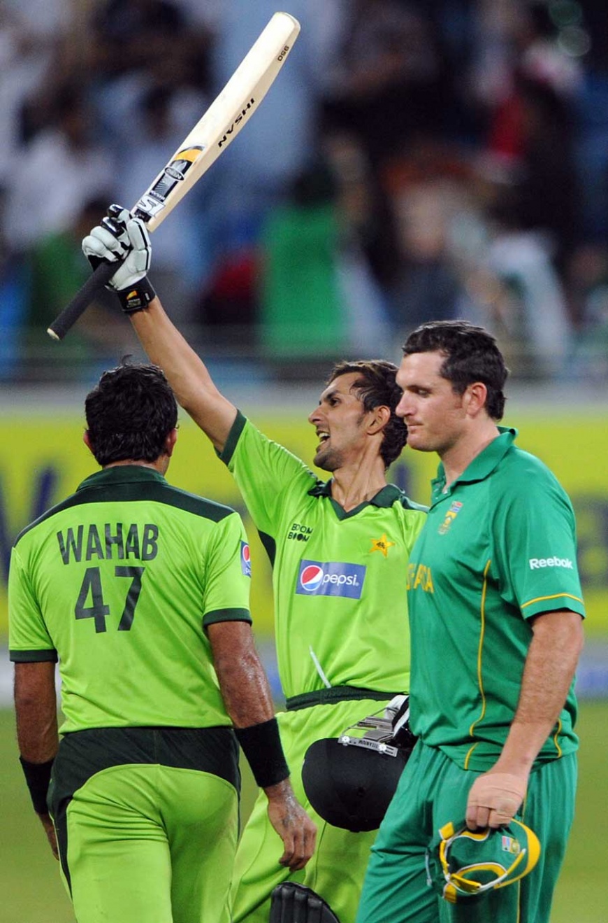Pakistan did well to restrict the scoring rate and Jacques Kallis tried to break the shackles by slog-sweeping Hafeez over midwicket but could only pick out the fielder on the boundary. Immediately following Kallis's departure, Smith took three boundaries off Wahab's third over - including two deft glides to third man - as he hurried towards his fifty.