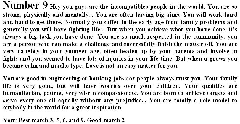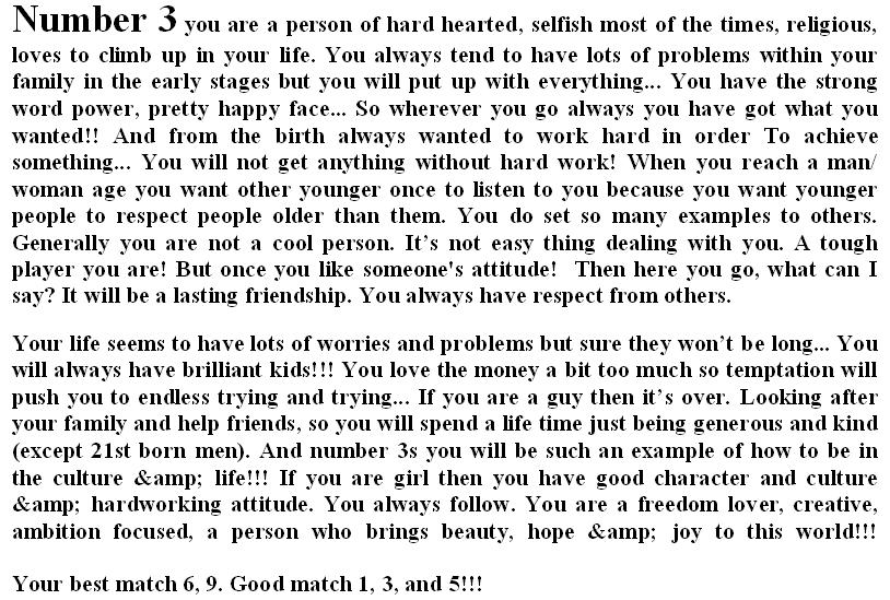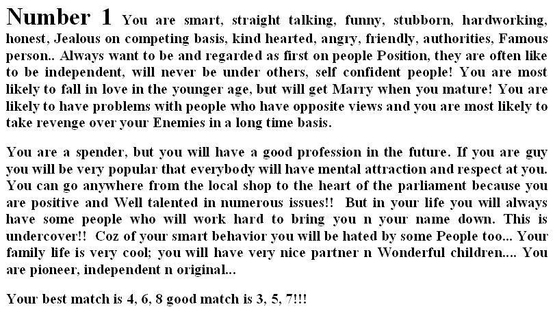 Story behind your Date of Birth 10 Attachment(s) Dear Friends, It's for fun only, just test your qualities and share with others if the forecast of your qualities are right or wrong in the below attachments.. Just check your number as per your birth date and find out detail... |