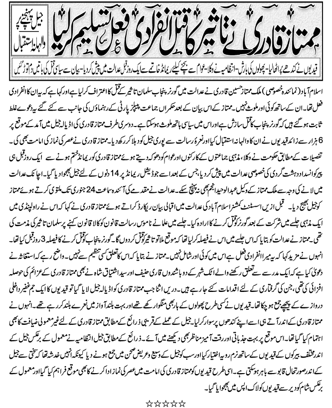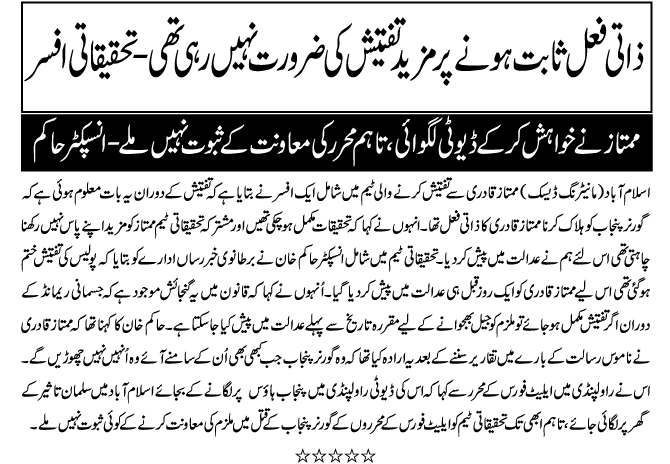 Re: Mumtaz qadari ki ibtadai tehqeqat 2 Attachment(s) Mumtaz Qadri say Tehqiqat kernay wala Oficer... ab Banda kis ko sahi samjhay... ? |