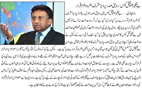 "Pervaiz Musharaf is a Fugitive ( مفرور) in Benazir Bhutto case" - Islamabad High Court 1 Attachment(s) "Pervaiz Musharaf is a Fugitive ( مفرور) in Benazir Bhutto case" - Islamabad High Court Attachment 22088 |