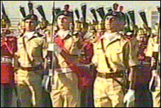 Change of guard ceremony at Quaid’s mausoleum held on his 131 Birthday 1 Attachment(s) Change of guard ceremony at Quaid’s mausoleum held KARACHI: A graceful ceremony of the change of guards was held here at the mausoleum of the Father of the Nation, Quaid-e-Azam Mouhammed Ali Jinnah, whose 131st birth anniversary is being celebrated today. A smartly turned out 15-member contingent of the cadets from Pakistan Military Academy (PMA), Kakul took over the duties at the mausoleum of the Quaid from the Pakistan Air Force guards at a dignified ceremony held here this morning at 8.00 A. M. sharp. Major General Zahid Hussain, the guest of honour on this occasion laid floral wreaths at the mausoleum, offered ‘Fateha’ and recorded his tributes to the Founder of the Nation in the guest book. Later, Major General Zahid Hussain took salute from the contingent of PMA cadets and inspected the parade. |