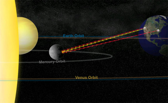 NASA's Mercury Messenger probe captured this historic image of Mercury, 12 Attachment(s) The first spacecraft ever to circle Mercury has beamed home the first-ever photo taken of the small rocky planet from orbit, showing a stark landscape peppered with craters. NASA's Messenger spacecraft snapped the new Mercury photo today (March 29) at 5:20 a.m. EDT (0920 GMT). The photo shows the stark gray landscape of southern Mercury, a view that is dominated by a huge impact crater NASA's Mercury Messenger probe captured this historic image of Mercury, the first ever obtained from a spacecraft in orbit about the solar system's innermost planet. The photo was taken on Tuesday (March 29) "This image is the first ever obtained from a spacecraft in orbit about the solar system's innermost planet," Messenger mission scientists explained in a statement. The new Mercury photo shows a region around the south pole of Mercury. A 53-mile (85-kilometer) wide crater called Debussy clearly stands out in the upper right of the image, with bright rays emanating from its center. A smaller crater called Matabei, which is 15 miles (24 km) wide and is known for its "unusual dark rays," is also visible in the image to the west of the Debussy crater, mission managers explained. The new Mercury photo was posted to the Messenger mission website managed by the Johns Hopkins University Applied Physics Laboratory, which is overseeing the flight for NASA. The photo is the first of 363 snapshots Messenger took during six hours of observations around Mercury. The images are expected to cover previously unseen areas of Mercury, terrain that was missed by Messenger during three previous flybys before it entered orbit. Messenger arrived at Mercury on March 17, more than 6 1/2 years after its launch from Earth. The spacecraft paused in its Mercury photo reconnaissance work just long enough to beam the new images back to Earth, mission managers said. "The Messenger team is currently looking over the newly returned data, which are still continuing to come down," Messenger mission scientists said. NASA plans to hold a teleconference with reporters on Wednesday to review the latest Mercury discoveries by the Messenger probe. The spacecraft's name is short for the bulky moniker MErcury Surface, Space ENvironment, GEochemistry, and Ranging. The $446 million Messenger probe is expected to spend at least one Earth year studying Mercury from orbit. The spacecraft is in an extremely elliptical orbit that brings it within 124 miles (200 kilometers) of Mercury at the closest point and retreats to more than 9,300 miles (15,000 km) away at the farthest point. The primary science mission phase will begin on April 4, when Messenger will start mapping the entire surface of Mercury, a process that is expected to require around 75,000 images. Scientists hope the spacecraft will help answer longstanding mysteries over the planet's geology, formation and history. While Messenger is the first mission ever to orbit around Mercury, it is not the first spacecraft to visit the planet. NASA's Mariner 10 spacecraft flew by the planet three times in the mid-1970s. |