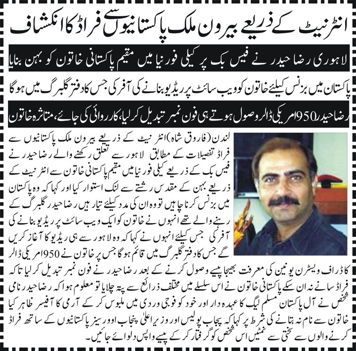Re: Internet ke zariye beroon mulk Pakistaniyon se farad ka inkeshaf Quote:
