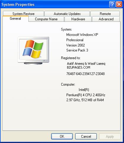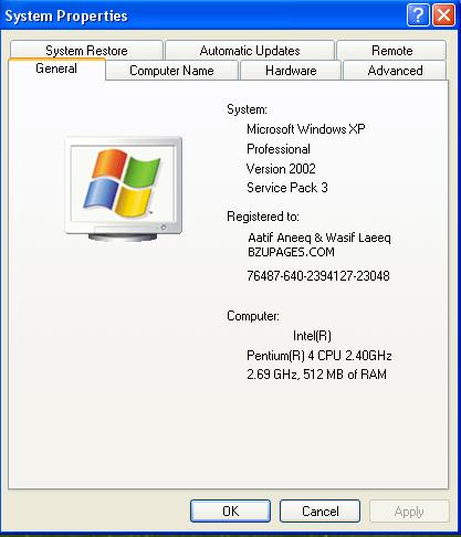 Can You Let your CPU work faster than it's speed? 1 Attachment(s) That's not a question... See the attached screenshot of my System Properties It's original speed is 2.4GHz but working at 2.69GHz Is it Possible? Yes It is... But it needs some technical knowledge to do so.. Abhi tu mere exams ho rahay hein... I will tell you how to do this after my exams... :12n: |