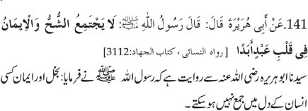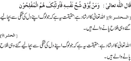 "Save yourself from Bukhl, for it has destroyed nations before you" It does not, therefore, behoove a Muslim to be miserly. In being stingy one is paving the path to Jahannam. Bukhl in reality is the effect of love for wealth which directs man's attention to the world. The consequence of this is the weakening of the bond of love with Allah Ta'ala. At the time of death the miser looks on his wealth with regret and sorrow. He has to embark on his journey into the Aakhirah reluctantly and forcibly because in him there is no desire to meet Allah Ta'ala. According to the Hadith, the one who at death has no desire to meet Allah Ta'ala is a Jahannami (one who will enter Jahannam). |