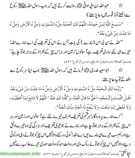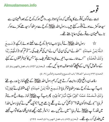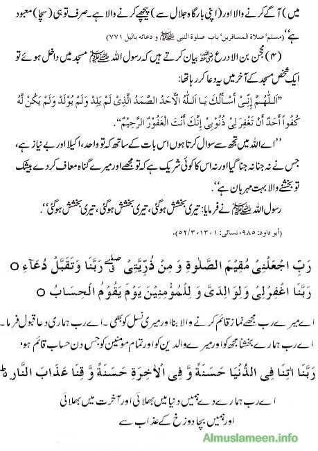 Namaz + urdu tarjuma;Sana,Tauz,Surah Fatiha, Ikhlas,Qayam,Ruku,Qoma,Sajda,tashhud,Darood,Salam 13 Attachment(s) Urdu Translation of Namaz Assalam-o-Alaikum! Dear brother Most of us don’t know Arabic Language, that’s why we can’t understand what ALLAH (GOD Almighty) says to us, even when we offer/Ada Namaz/Pray. So I am going to post Urdu Translation of Namaz, Please remember me in your Prays. Attachment 26088 Attachment 26089 Attachment 26090 Attachment 26091 Attachment 26092 Attachment 26093 Attachment 26094 Attachment 26095 Attachment 26096 Attachment 26097 Attachment 26098 Attachment 26099 Attachment 26100 Allaho Akbar! Subhana kala huma wabehamdika, watabrak asmoka , watallah jadoka, walla illaha ghairuk. I. Translation of Surah al-Hamd Bismillahir Rahmanir Rahim (I commence with the Name of Allah – in Whom all excellences are combined and Who is free from all defects. The Compassionate – One Whose blessings are extensive and unlimited. The Merciful – One Whose blessings are inherent and eternal). Alhamdu lillahi Rabbil ‘alamin (Special Praise be to Allah, the Sustainer of the creation). Arrahmanir Rahim (The Compassionate, the Merciful). Maliki yaw middin (Lord of the Day of Judgement). Iyyaka na’budu wa iyyaka nasta’in (You alone we worship, and to You alone we pray for help). Ihdinas siratal mustaqim (Guide us to the straight path). Siratal lazina an’amta ‘alayhim (The path of those whom You have favoured – the Prophets and their successors). Ghayril maghzubi ‘alayhim walazzallin. (Not of those who have incurred Your wrath, nor of those who have gone astray). II. Translation of Surah al-Ikhlas Bismillahir Rahmanir Rahim (I commence with the Name of Allah – in Whom all excellences are combined and Who is free from all defects. The Compassionate – One Whose blessings are extensive and unlimited. The Merciful – One Whose blessings are inherent and eternal). Qul huwallahu Ahad (O Prophet!) Say: Allah is One – the Eternal Being). Allahus Samad (Allah is He Who is independent of all beings). Lam yalid walam yulad (He begot none, nor was He begotten). Walam yakullahu kufuwan ahad. (And none in the creation is equal to Him). III. Translation of the Zikr during Ruku and Sajdah, and of those which are Mustahab Subhana Rabbi yal ‘Azimi wa bihamdhi (Glory be to my High Sustainer and I praise Him) Subhana Rabbi yal A’la wa bihamdih (Glory be to my Great Sustainer, Most High, and I praise Him) Sami’ Allahu liman hamidah (Allah hears and accepts the praise of one who praises) Astaghfirullaha Rabbi wa atubu ilayh ( I seek forgiveness from Allah Who is my Sustainer, and I turn to Him). Bi haw lillahi wa quwwatihi aqumu wa aqu’d (I stand and sit with the help and strength of Allah). IV. Translation of Qunut La ilaha illallahul Halimul Karim (There is none worth worshipping but Allah Who is Forbearing and Generous). La ilaha illallahul ‘Aliyyul ‘Azim (There is none worth worshipping but Allah Who is Eminent and Great). Subhanallahi Rabbis samawatis sab’ wa Rabbil arazinas sab’ (Glory be to Allah, Who is the Sustainer of the seven heavens and of the seven earth). Wama fi hinna wama bayna hunna, wa Rabbil ‘arshil ‘azim (And Who is the Sustainer of all the things in them, and between them, and Who is the Lord of the great ‘Arsh (Divine Power). Wal hamdu lillahi Rabbil Aalamin (And all praise for Allah, the Sustainer of the worlds). V. Translation of Tasbihat Arba’ah Subhanallahi wal hamdu lillahi wa la ilaha lallahu wallahu Akbar. (Glory be to Allah, and all praise is for Him and there is no one worth worshipping other than Allah, and He is Greater than any description). VI. Translation of Tashahhud and Salam Al Hamdu lillah, Ash hadu an la ilaha illal lahu wahdahu la sharika lah (All praise is for Allah, and I testify that there is none worth worshipping except the Almighty Allah, Who is One and has no partner). Wa Ashhadu anna Muhammadan ‘abduhu wa Rasuluh (And I testify that Muhammad is His servant and messenger). Alla humma salli ‘ala Muhammadin wa Ali Muhammad. (O Allah! Send Your blessings on Muhammad and his progeny). Wa taqqabal shafa’atahu warfa’ darajatahu (And accept his intercession, and raise his rank). Assalamu ‘alayka ayyuhan Nabiyyu wa rahmatullahi wa barakatuh (O Prophet! Allah’s peace, blessings and grace be upon you!). Assalamu ‘alayna wa ‘ala ‘ibadil lahis salihin (Allah’s peace be on us, those offering prayers – and upon all pious servants of Allah). Assalamu ‘alaykum wa rahmatullahi wa barakatuh. (Allah’s peace, blessings and grace be on you believers!) |