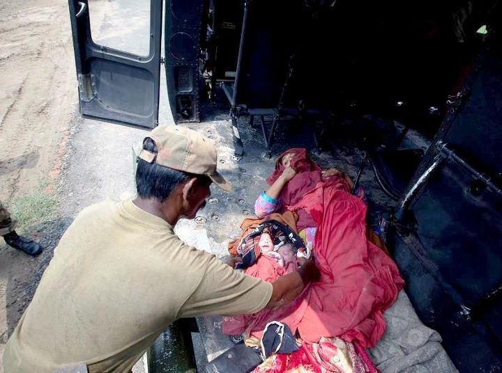Birth of Twins Babies in Helicopter During Flood Relief