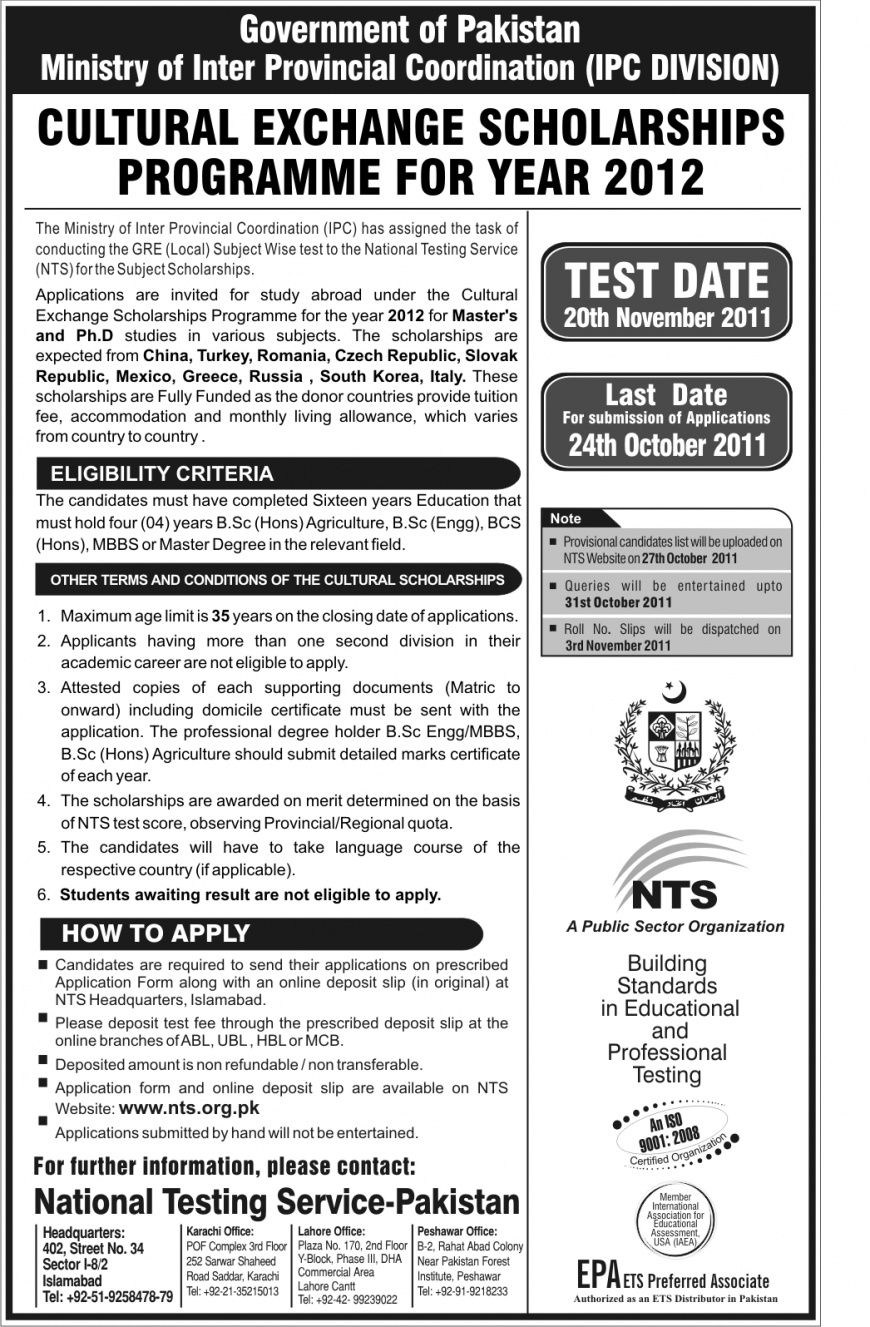 Cultural Exchange Scholarships Programme For Year 2012 (IPC Division) 3 Attachment(s)