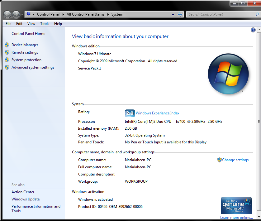 Re: Check your Windows Se7en version... salma baji na mano ho skta hai dual booting ki ho ek pc py 2 windows.....main ny b XP and 7 ki hui hain...:yippie: ---------- Post added at 07:53 PM ---------- Previous post was at 07:52 PM ---------- thanks to .bzu. easy way btany ka win XP ka b bta do koi easy way version check kerny ka |