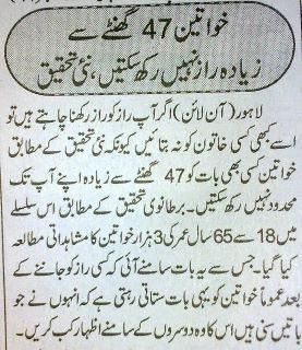 Khawatein 47 ghantay say zaida koi raaz , raaz nai rakh sakhtein nai tehqeeq 1 Attachment(s) Attachment 28128 toba hai main ajj k bad apna koi raaz bzupages ki khawatein , larkiyun ,, kisi ko bhi na batahun ,, wese ladies kitne % yey bat such hai batahain zara |