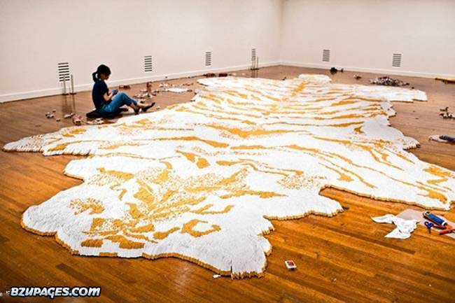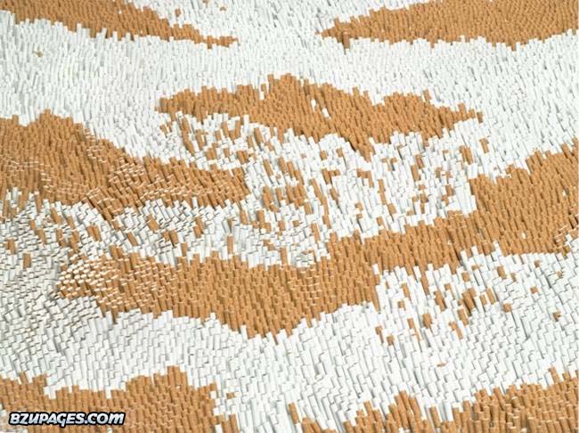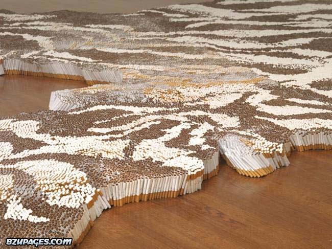 Tiger Rug Made of 500,000 Cigarettes 9 Attachment(s) Attachment 28377 We're all aware of the lavish furnishing of a bearskin rug, but have you ever seen a tiger-print rug made out of 500,000 cigarettes? China's renowned contemporary artist Xu Bing has worked on tobacco-related projects for over ten years. Bing's works of art, inspired by the nicotine-rich leaves, began in 2000 at Duke University. Attachment 28378 Over a decade later, the imaginative artist is now exhibiting the third and final installment of his trilogy, known as Tobacco Project. This 440-pound rug is only one piece of his current series. The entire exhibit explores global trade, packaging, marketing, and the irony of subliminal seduction in advertising for a potentially life-threatening product. Bing's work is running now through December 4, 2011 at the Virginia Museum of Fine Arts and will be moved to the Aldrich Contemporary Art Museum in Ridgefield, Connecticut in January 2012. Attachment 28379 Attachment 28380 Attachment 28381 Attachment 28382 Attachment 28383 Attachment 28384 Attachment 28385 |