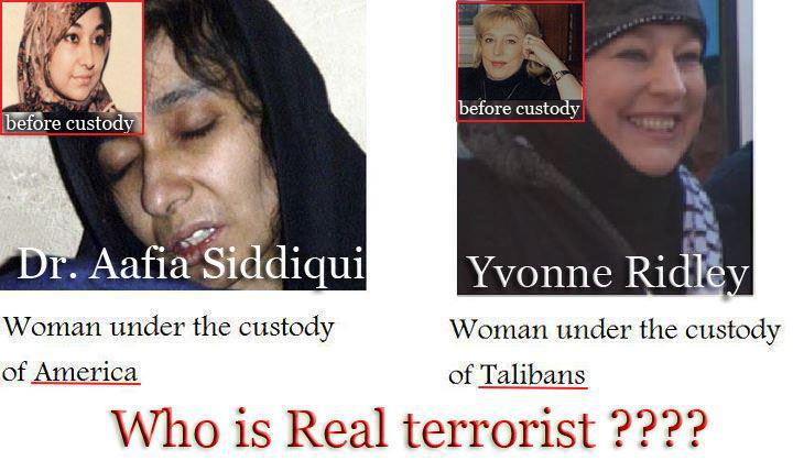 Who is real terrorist, Women under the custody of America and Talban 1 Attachment(s) Yvonne Ridley - Yvonne Ridley - Wikipedia, the free encyclopedia Dr. Aafia Siddiqui - Aafia Siddiqui - Wikipedia, the free encyclopedia Attachment 28649 |