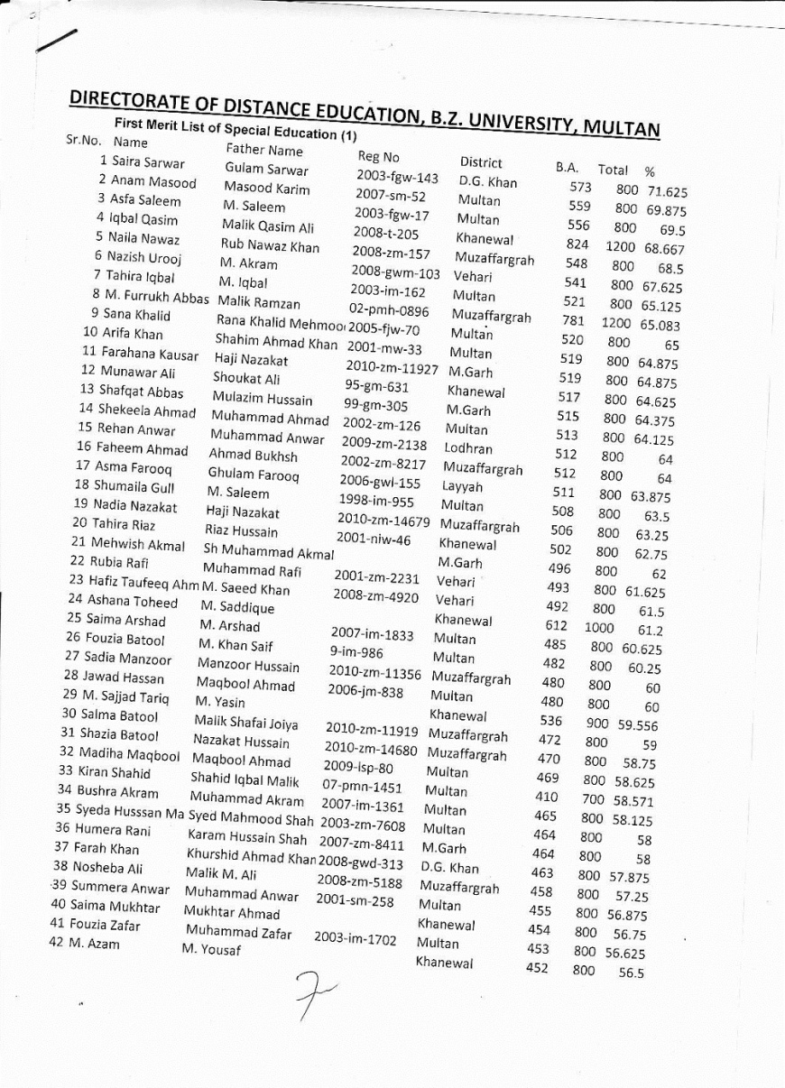 1st Merit List MSC Special Education Distance Learning Education 2012 2 Attachment(s) 1st Merit List MSC Special Education Distance Learning Education 2012. Attachment 28760 Attachment 28761 |
