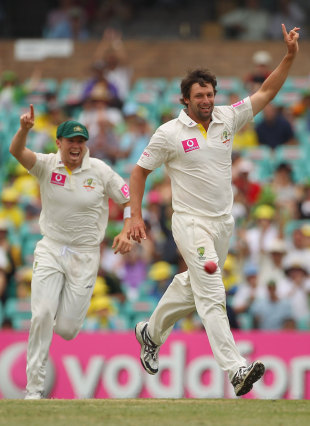 Hilfenhaus takes five in Australia's innings win 1 Attachment(s) Attachment 28775 Australia 4 for 659 dec beat India 191 and 400 (Gambhir 83, Tendulkar 80, Laxman 66, Ashwin 62, Hilfenhaus 5-106) by an innings and 68 runs.. This was supposed to be India's best chance to win a Test series in Australia. It has taken only eight days of cricket for Michael Clarke's men to deny them that goal. On the fourth afternoon in Sydney, an attack led by Ben Hilfenhaus deconstructed India's formidable batting line-up, bit by bit, to secure an unbeatable 2-0 series lead with victory by an innings and 68 runs, Australia's first innings win over India in 12 years. The last such result also came at the SCG, in 2000. Sachin Tendulkar, Rahul Dravid and VVS Laxman were all part of that side, as they were members of the outfit that lost this time around. It is unlikely they will have another chance to beat Australia at home. For now, India still hold the Border-Gavaskar Trophy, and should they win in Perth and Adelaide they will retain it. But their grip on it is as weak as Chris Martin's forward defence. This was an Australian victory that will be remembered for Clarke's unbeaten 329. But on the fourth day, it was a second consecutive five-wicket haul from Hilfenhaus that was the highlight. Hilfenhaus completed the success with the final wicket when R Ashwin, who had made a fighting 62, skied a pull and was caught by Nathan Lyon running around from mid-on. The Australians were overjoyed. Clarke especially was thrilled. His declaration on the third day, when he could have chased personal milestones like Brian Lara's world-record Test innings of 400, was designed to ensure Australia would win the match. They did so with three and a half sessions remaining. Clarke is not the kind of man to harbour any regrets. The win was everything. He knew better than anyone that batting on the SCG surface was not particularly difficult, and as Tendulkar and Laxman put on a 103-run stand his mind might have flicked back eight years, to a 353-run partnership between the same men at the same ground. Fittingly, it was Clarke with his left-arm spin that ended the partnership, and India's hopes of saving the Test. Tendulkar had reached 80 and seemed to be on track to register his long-awaited hundredth international hundred in the SCG's hundredth Test when Clarke changed the course of the day. He produced a delivery that was accurate enough to draw Tendulkar into a stroke and turned just enough to catch the edge, which ricocheted off Brad Haddin's gloves and was snaffled by Michael Hussey at slip. When the new ball arrived, the other architect of that one threatening partnership, Laxman, on 66, fell to a near-perfect delivery from Hilfenhaus, who finished with 5 for 106. The ball angled in and then nipped away to beat the outside edge of Laxman's bat, clipping the edge of the top of off stump, and the batsman could scarcely believe his fate, confident as he appeared that he had covered his wicket. From there, the wickets fell steadily. MS Dhoni (2) chipped a return catch to Hilfenhaus, who seemed to think it was a bump ball. But the umpire's decision to have the third official check on the shot revealed it had lobbed cleanly back to Hilfenhaus without touching the ground, surprising some of the Australians. Virat Kohli was lbw to James Pattinson for 9, a fraction unlucky as the ball kept low, but there was no question over the decision. Peter Siddle joined in by removing Zaheer Khan, who had made an entertaining 35 when he slashed hard at a delivery outside off and was taken by Shaun Marsh running back from extra cover. Briefly, Ishant Sharma and Ashwin staved off the Australians with a 42-run stand, but Ishant (11) was lbw to the offspin of Nathan Lyon. That was the only breakthrough of the match for Lyon, who also collected just one in Melbourne and has not removed a top-six batsman since the first Test of the summer, against New Zealand at the Gabba. Though usually loath to change a winning side, Australia might consider replacing him with Ryan Harris at the WACA. There are far more questions for India. For a while it looked like they might take the match into the fifth day as they worked through the first session for the loss of only one wicket, that of Gautam Gambhir. He missed the chance for his first Test century in nearly two years when, on 83, he stood on the crease and reached his bat a long way forward to the bowling of Siddle, who found a leading edge that was snapped up by David Warner at point. Tendulkar and Laxman continued to fight. Laxman played some of his trademark wristy flicks through the leg side, against the fast men and also the offspin of Lyon, and Tendulkar showed off some wonderful cover-drives early in the morning. Shortly before the lunch break, Tendulkar upper-cut a frustrated Pattinson over the sole slip for another boundary. But it was all a big tease for the Indian fans. In a match where three Australians made tons, including one triple-hundred, India needed more than a handful of pretty half-centuries. There are questions over their batting and their bowling as the Perth Test approaches. They have a week to sort out their problems. Brydon Coverdale is an assistant editor at ESPNcricinfo |