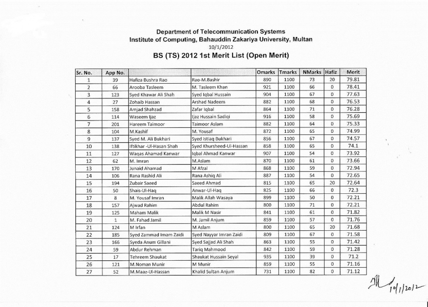 1st Merit list BS Telecommunication System BZU 2012 2 Attachment(s) |