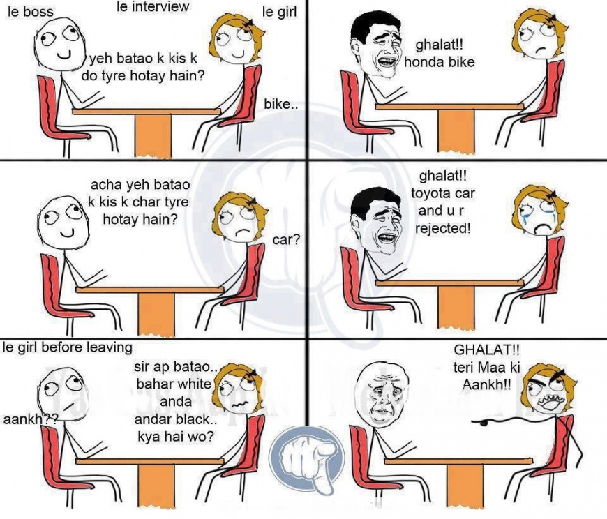 Re: Girl during interview hahaha bohat acha kiya aisy boss k sath aisa he karna chaye....good:biggrin: |
