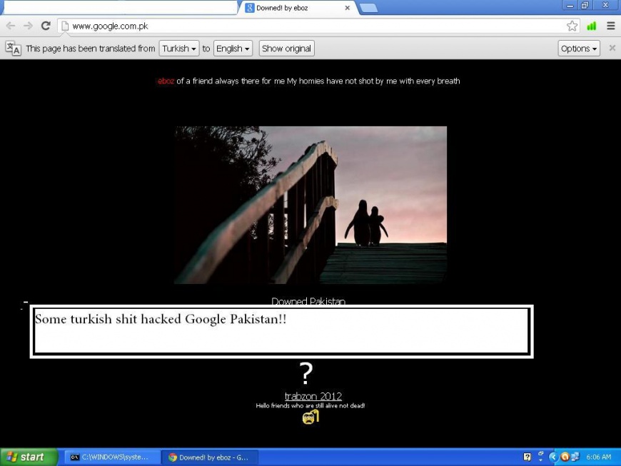 Google.com..pk got hacked on 24th November 2012 morning 1 Attachment(s) Google.com..pk got hacked today morning on 24th November 2012.. It seems it is hacked by some Turkish hackers. Attachment 29441 |