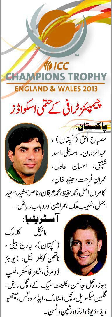 ICC Champions Trophy England & Wales 2013 Teams Players 4 Attachment(s) ICC Champions Trophy England & Wales 2013, All Teams Players / Squad . URDU Total Numbers of Team : 8