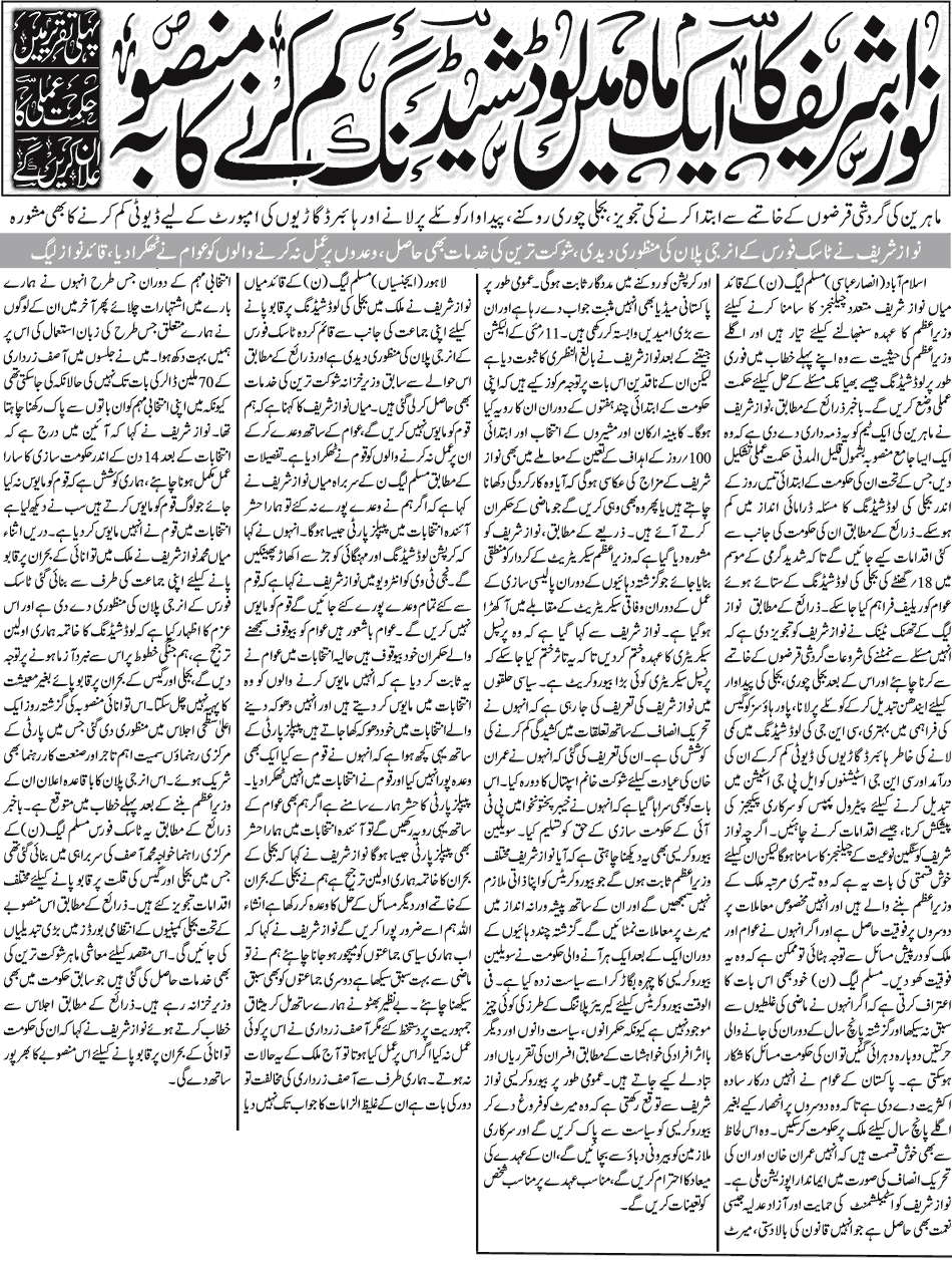 Re: Nawaz Sharif ka aik Mah mai Load Shedding kam kernay ka mansoba Yeah its realy nice well i appreciate it ... and also pray For Pakistan..... |