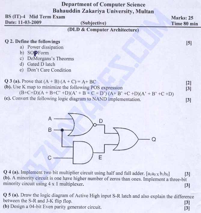Mid term paper Digital Logic and Computer Architecture, BIT 4th By Sir Khalil Afzal Computer Science Department 1 Attachment(s) Easy and simple paper.... Acha ho giya hay... takreban. NAND Gate se implementation wala sahi nahi huya .. zara.. mai nay inverter laga di ay thay na... aur latch and flipflop wala bhi nahi hua sahi... shyad sahi hoo,..:smilebige: I am now going to sleep:mimindo7ix: |