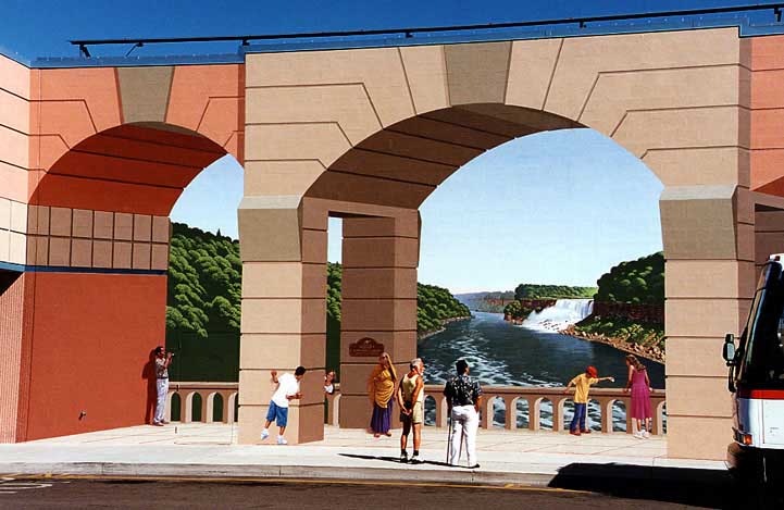 Not the usual paint job! 16 Attachment(s) The wall starts to take on a 3-dimensional appearance. Attachment 6688 Eric in his element, 30' off the ground. He does most of the artwork by himself & researches, paints and designs each project from scratch. His wife Kathy, also an artist, serves as project manager. Attachment 6686 After photo - Finished product - MORE BELOW! Here are some more examples of Eric's projects... Great American Crossroad - Bucyrus , Ohio Before photo - Attachment 6695 After photo Attachment 6681 Liberty Remembers Attachment 6682 Before photo Attachment 6689 After photo... hard to believe you're looking at a flat 2-dimensional wall. How to dress up a drab Shopping Mall - Niagara , New York Before photo.. Attachment 6694 After photo... Attachment 6684 also look at the close-up of left side and middle Attachment 6696 Attachment 6685 (I wonder how many birds fly into this wall on a daily basis??) Indoor Murals Miller Brewery... Hallway Before - Miller Fermenting Rooms Attachment 6693 After photos... - Past meets Present in the Miller Brewery Fermenting Rooms. Hooks, clipboards and aprons were added to the surface of the murals to enhance the illusion... You're looking at flat walls! Attachment 6691 Attachment 6690 Detail view looking down the illusional hallway in the previous mural. SIMPLY AMAZING, ISN'T IT? I wonder how many people walk into the walls, while trying to go down a hallway that does not exist! |