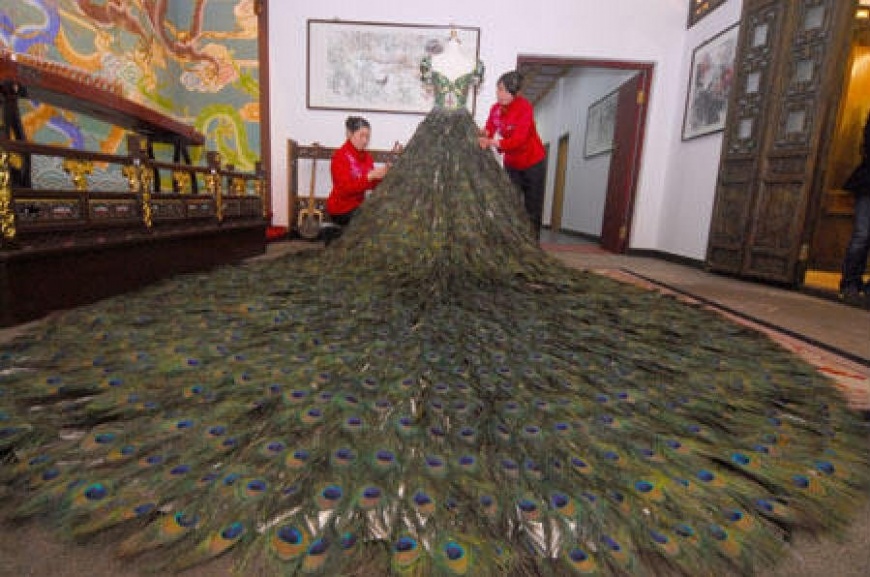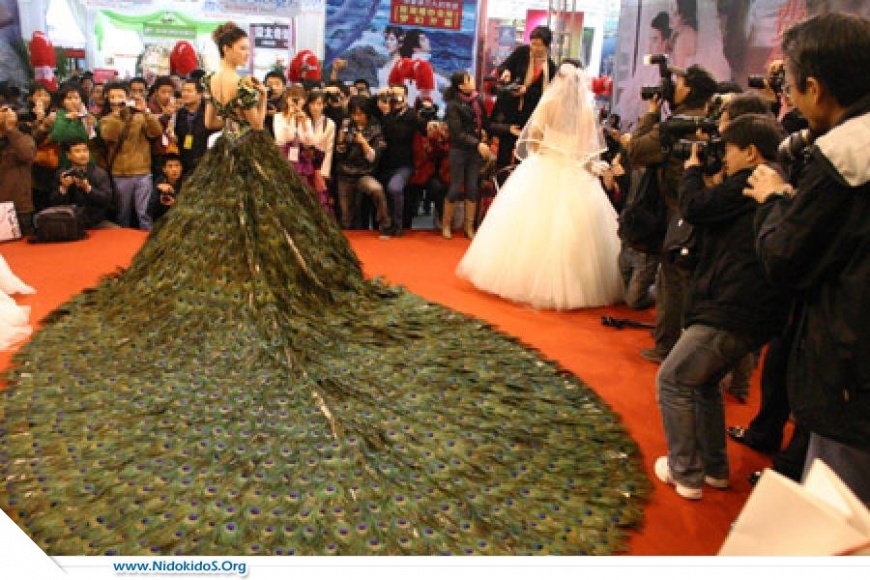 Peacock Feather Wedding Dress- 2 Attachment(s) Peacock Feather Wedding Dress---A model in Nanjing, China poses at a wedding expo in a wedding dress decorated with an enormous number of peacock feathers. The bride that buys this $1.5 million dress better really love peacock feathers. People's Daily Online says the wedding dress is decorated with over 2,000 peacock feathers and it took eight designers two months to finish the dress. Attachment 7095 Attachment 7096 |