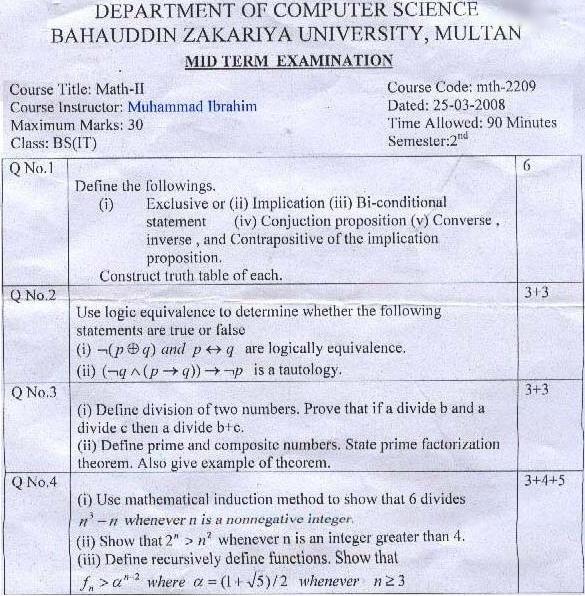 Re: MID term paper BSIT 2nd Math for IT 2nd Wah 14 marks 30 main say good baji good |