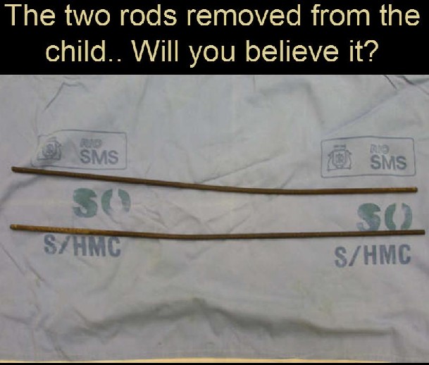 Re: Mirical, Rod passed through the neck of the small child but he is alive now... 3 Attachment(s) |