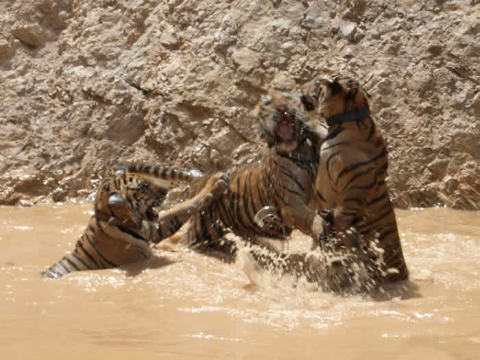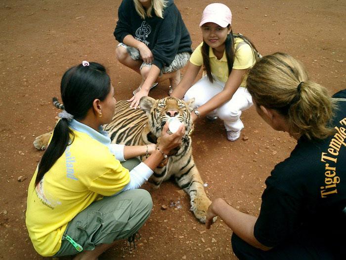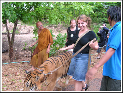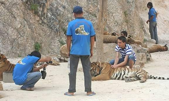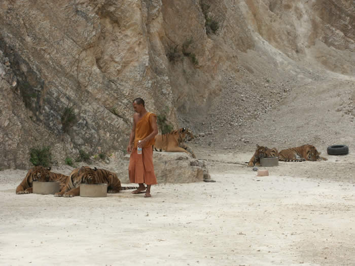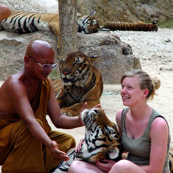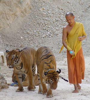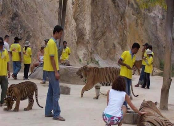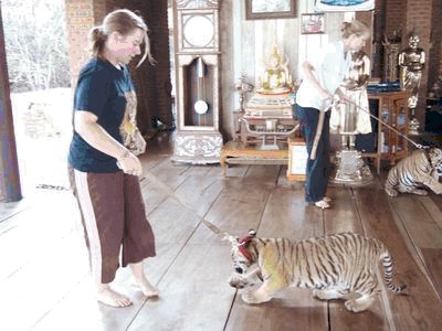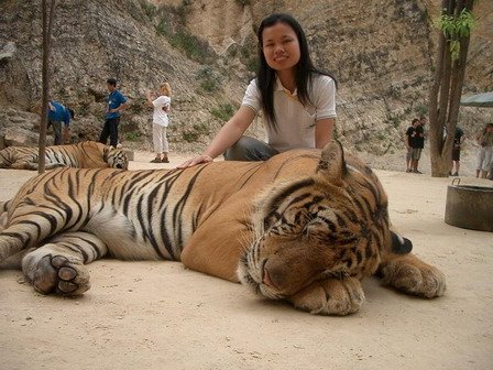 Strong Tigers at Kanchanaburi Tiger Temple/ Wat Pha Luang Ta Bua in Thailand 20 Attachment(s) Tiger Temple, or Wat Pha Luang Ta Bua, is a Buddhist temple in Western Thailand which keeps numerous animals, among them several tigers that walk around freely once a day and can be petted by visitors. The Theravada Buddhist temple is located in the Saiyok district of Thailand's Kanchanaburi province, not far from the border with Myanmar, some 38 km north-west of Kanchanaburi along the 323 highway. It was founded in 1994 as a forest temple and sanctuary for numerous wild animals. In 1995 it received the Golden Jubilee Buddha Image, made of 80 kilograms of gold. According to the abbot and others associated with the temple, in 1999 the temple received the first tiger cub, it had been found by villagers and died soon after. The story goes that several tiger cubs were later given to the temple over time, typically when the mothers had been killed by poachers, others who wanted to get rid of their tiger "pets" or those were under pressure to do so as laws and policies surrounding the keeping of cites protected species became more strict. As of 2007, over 21 cubs have been born at the temple and the total number of tigers is about 12 adult tigers and 4 cubs. The subspecies of these tigers is unknown as none of them have been DNA tested, but it is thought that they are Indochinese Tigers, except Mek (a Bengal Tiger). There is also a possibility that there may be some of the newly discovered Malayan Tigers and it is likely that many are cross breeds or hybrids. They are washed and handled by Thai monks, as well as local staff, and international volunteers. Once a day they are walked on leashes to a nearby quarry. Originally they would roam around freely in this area but now, with the increase in visitors and the amount of tigers who sit in the canyon, are chained. The staff closely guide visitors as they greet, sit with, and pet the cats. The staff keep the tigers under control and the abbot will intervene if the tiger gets agitated. Nervous tourists may also observe this from about 10 metres away. The temple collects donations for feeding and upkeep, and to fund the building of a larger tiger sanctuary which would allow the animals to live in an almost natural environment all day long. The Tiger Temple practices a different conservation philosophy than in the west. In western zoos and parks the emphasis is on providing a natural environment for the animals. In the temple, at least until the sanctuary is completed, the animals seem to be treated more as family members. Although it may be possible for the offspring of the current generation to return to the wild, their parents will live out a life within the temple grounds. Their conservation philosophy seems to be working, while projects elsewhere often need to resort to artificial insemination over 10 cubs have been born at the temple in the last three years despite having no breeding program whatsoever. The temple opens daily for visitors at about 1pm, and the tigers are walked back to their enclosures at around 4pm. Due to the pressing need for income, the temple now charges 300 Baht admission. The most common way of visiting the temple is to go on a tour from nearby Kanchanaburi for 300 Baht per head, or to hire your own Songthaew from the bus station for a group for less than 1000 Baht. Day trips are also available from Bangkok. Prices current as of July 2006 and do not include temple entrance fee. The temple now receives 300 to 600 visitors a day. There are donations boxes in various locations around the temple for those who wish to support the sanctuary. To get photos with the tigers, visitors are asked to give a donation. Attachment 953 Attachment 954 Attachment 955 Attachment 956 Attachment 957 Attachment 958 Attachment 959 Attachment 960 Attachment 961 Attachment 962 Attachment 963 Attachment 964 Attachment 965 Attachment 966 Attachment 967 Attachment 968 Attachment 969 Attachment 970 Attachment 971 Attachment 972