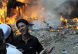 Re: 91 killed in Peshawar market blast: officials پشاور کی پیپل منڈی میں واقع مصروف مینا بازار میں بدھ کو ہونے والے طاقت ور بم دھماکے میں مرنے والوں کی تعداد 109ہو گئی ہے جن میں15بچے اور 27خواتین شامل ہیں۔ یہ تفصیلا ت لیڈی ریڈنگ ہسپتال میں چسپاں کی گئی فہرست میں دی گئی ہیں۔ اس حملے میں 184 سے زائد افراد زخمی ہوئے جن میں کئی کی حالت تشویش ناک بتائی گئی ہے۔ بارود سے بھری ایک گاڑی میں کیا جانے والایہ دھماکہ امریکی وزیر خارجہ ہلری کلنٹن کی اسلام آباد آمد کے چند گھنٹوں بعد ہوا اور پچھلے دو سالوں میں پاکستان میں ہونے والا یہ مہلک ترین بم دھماکہ ہے جس میں بہت بڑی تعداد میں شادی بیاہ کا سامان، کھلونے اور زیورات بیچنے والی دکانوں کو ملبے کے ڈھیر میں بدل دیا۔ اس بازار میں پشاور اور اس کے مضافات میں آباد متوسط اور غریب طبقات سے تعلق رکھنے والی خواتین خریداری کے لیے آتی ہیں۔ امریکہ وزیر خارجہ نے بدھ کو اسلام آباد میں اپنے پاکستانی ہم منصب کے ساتھ ایک نیوز کانفرنس میں اس واقعہ کی مذمت کرتے ہوئے اسے بزدل افراد کی کارروائی قرار دیا جو انتہاپسندی کو فروغ دینے کے لیے معصوم لوگوں کو ہلاک کررہے ہیں |