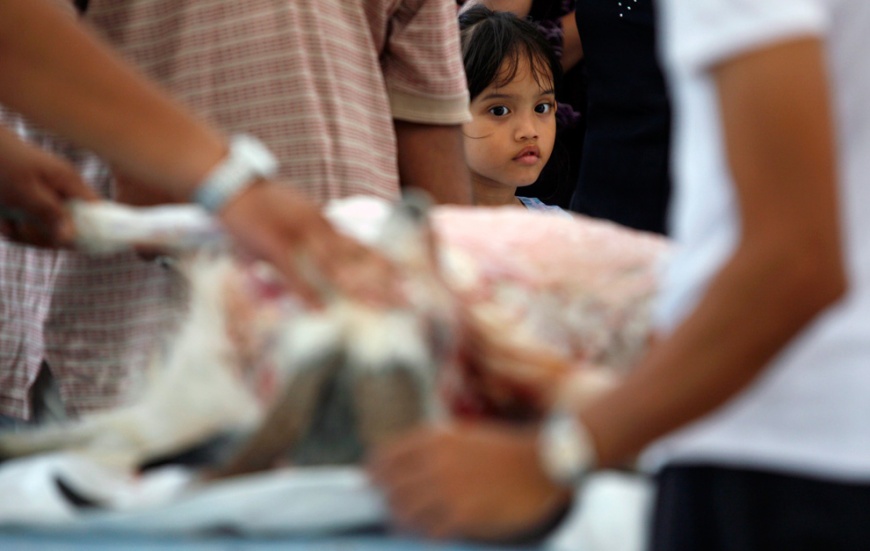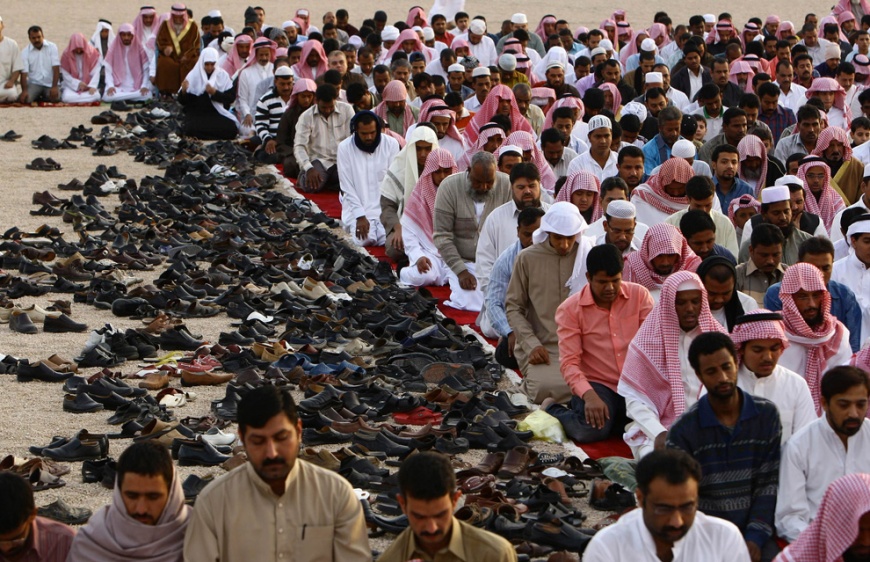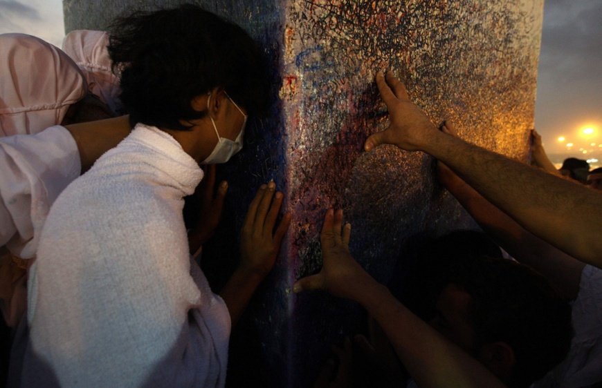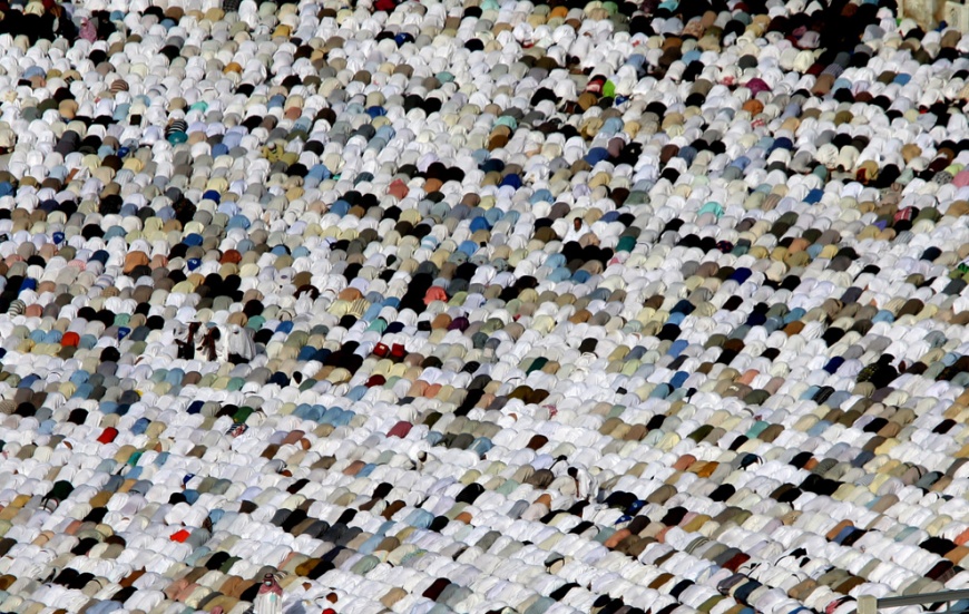 Great pictures of Eid ul Adha and the Hajj 37 Attachment(s) Today, November 27th, marks the beginning of 2009's Eid al-Adha, the Muslim "Festival of Sacrifice", commemorating the willingness of Ibrahim (Abraham) to sacrifice his son to God. Muslims around the world will celebrate by slaughtering animals to commemorate God's gift of a ram to substitute for Abraham's son, distributing the meat amongst family, friends and the poor. Eid al-Adha also takes place immediately after the Hajj, a pilgrimage to Mecca that is a pillar of Islamic Faith. Some 2.5 million Muslim faithful from all over the world descended on Mecca this year, many encountering an unusual occurance: heavy flooding due to recent torrential rains. Collected below are photographs from this year's Hajj and observance of Eid al-Adha. Attachment 11499 A Muslim pilgrim prays near where the Hiraa cave is located, at the top of Noor Mountain on the outskirts of Mecca, Saudi Arabia, Tuesday, Nov. 24, 2009. According to tradition, Islam's Prophet Mohammed received his first message to preach Islam while he was praying in the cave. Muslim pilgrims pray on atop Noor Mountain in the holy city of Mecca before the start of the annual hajj pilgrimage, on November 23, 2009. The illuminated Grand Mosque is seen from the top of Noor Mountain where the Hiraa cave is located, in Mecca, Saudi Arabia, Tuesday, Nov. 24, 2009. Muslim pilgrims circle the Kaaba inside the Grand Mosque in the holy city of Mecca after morning prayers, before the start of this year's hajj pilgrimage November 24, 2009. Muslim pilgrims pray inside the Grand mosque in Mecca, Saudi Arabia, Tuesday, Nov. 24, 2009. Muslim pilgrims pray outside Namira mosque in Arafat near Mecca ,Saudi Arabia, Thursday, Nov. 26, 2009. An Indian pilgrim lies in the cardiac care unit at the Nour hospital in the holy city of Mecca on November 24, 2009. The Saudi Kingdom provides free medical care to pilgrims who become ill during their pilgrimage. A young Muslim boy runs during Eid al-Adha celebration at a mosque in Klang, outside Kuala Lumpur, Malaysia, Friday, Nov. 27, 2009. A mother adjusts her daughter's headscarf before a prayer on the occasion of Eid al-Adha at Jakarta's largest mosque, the Istiqlal on November 27, 2009 in Indonesia. A Kashmiri sells delicacies ahead of the Eid al-Adha festival, in Srinagar, India, Thursday, Nov. 26, 2009. Sacrificial sheep wait to be sold in an animal market set for the Muslim Feast of the Sacrifice in Amman, Jordan on Wednesday Nov. 25, 2009, ahead of Eid Al Adha holiday. The Emir of Kano, Nigera, Ado Bayero (center), surrounded by his traditional palace guards, rides on a horse after prayers to mark the first day of the Muslim holiday of Eid al-Adha in Kano, Nigeria on November 27, 2009. A man rides a motorbike with his children after prayers to mark the first day of the Muslim holiday of Eid al-Adha in Kano, Nigeria on November 27, 2009. A man is silhouetted along with his camels after they were brought to an animal market to be sold in Lahore, Pakistan on November 24, 2009, ahead of the Islamic Eid al-Adha celebrations. A herd of sheep, colored for identification, stand for sale at a wholesale cattle market, ahead of Eid al-Adha festival in Amritsar, India, Wednesday, Nov. 25, 2009. Muslim pilgrims run for cover as heavy rain streams down a road in the holy city of Mecca on November 25, 2009. An estimated 2.5 million Muslims have converged on Mecca for the annual hajj pilgrimage, as workers toil round the clock to complete construction projects designed to avoid deadly stampedes. A Muslim man looks at the raising of the dome on the metallic roof structure of the Strasbourg Grand Mosque in Strasbourg, France on November 27, 2009. Indonesian women pray on the first day of the Islamic holiday of Eid al-Adha in Jakarta on November 27, 2009. Muslim pilgrims gather at Mount Arafat, southeast of the Saudi city of Mecca on November 26, 2009. A Palestinian pilgrim holds prayer beads against a fence as they wait to pass from Gaza through the Rafah border crossing to Egypt for the upcoming Eid al-Adha festival, in Rafah, southern Gaza Strip, Tuesday, Nov. 24, 2009. A Muslim pilgrim prays on Mount Mercy on the plains of Arafat outside the holy city of Mecca November 26, 2009. Muslims pray during Eid al-Adha celebrations in Wuzhong, Ningxia Hui Autonomous Region, China on November 27, 2009. Muslims pray during Eid al-Adha celebrations on a street in Riyadh, Saudi Arabia on November 27, 2009. Muslim men pray during the Eid al-Adha (Kurban Bairam) festival of sacrifice holiday in Bishkek, Kyrgyzstan on November 27, 2009. Ivorian Muslims pray in front of the Fitya mosque of the popular Abobo district of Abidjan, Ivory Coast on November 27, 2009. A girl watches Muslims prepare meat after sheep were slaughtered during Eid al-Adha Feast of Sacrifice in Johor Bahru, Malaysia on November 27, 2009. The Prophet Mohammed Mosque in the Saudi holy city of Medina on November 12, 2009. Islam's Prophet Mohammed is buried in Medina's landmark mosque, which is Islam's second holiest shrine after Mecca. Saudi special forces display some of their skills and equipment during a ceremony as they prepare for the influx people to participate in the Hajj, in Arafat 15 kms outside of Mecca, Saudi Arabia, Sunday, Nov. 22, 2009. A helicopter hovers over Namira Mosque at Mount Arafat, southeast of the Saudi holy city of Mecca, on November 26, 2009. Muslim pilgrims on their way to throw pebbles at a stone pillar representing the devil, during the Hajj pilgrim in Mina near Mecca, Saudi Arabia, Friday, Nov. 27, 2009. The last stage of the annual Hajj pilgrimage, the symbolic stoning of the devil, began on Friday. Muslim pilgrim throw pebbles at a stone pillar representing the devil, during the Hajj pilgrimage in Mecca, Saudi Arabia, Friday, Nov. 27, 2009. Passengers travel atop a train as it heads for Jamalpur from Dhaka, Bangladesh on November 27, 2009. Millions of residents in Dhaka are travell