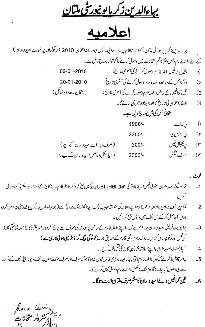 BA/BSc Final Exams Admission Notice 2010, BZU Multan; Last date 9th January 2010 1 Attachment(s) BA/BSc Final Exams Admission Notice 2010, BZU Multan; Last date 9th January 2010 |
