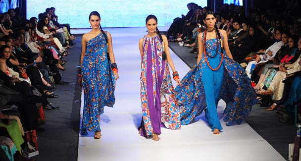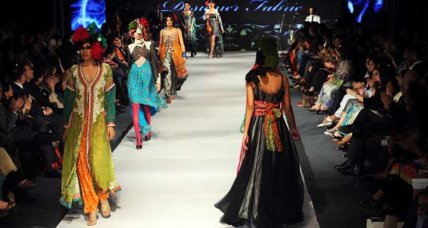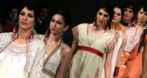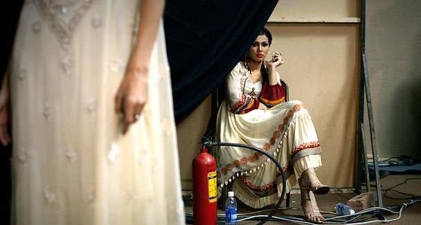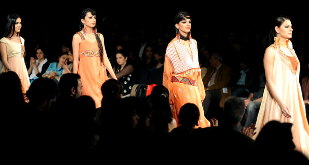 Lahore's Fashion 12 Attachment(s) Lahore’s Fashion Fusion A sneak peek at the first day of Pakistan Fashion Design Council Sunsilk Fashion Week in Lahore on February 16, 2010. The Fashion week will showcase 32 local designers over the four-day event with twists on traditional Pakistani dress and western styles. A model presents a creation by Pakistani designer Ali Zeeshan. Pakistani models present a final look of creations by local designer Asifa and Nabeel. Model Amna Ilyas smokes a cigarette before taking to the catwalk wearing a design by Nickie Nina. Models present creations by Pakistani designers Asifa and Nabeel. A creation by Pakistani designer Nida Azwer. Model Sabina Pasha wears designer Ali Zeeshan. Models present creations by Pakistani designer Sara Shahid. Designer Sara Shahid’s collection. Mehreen Syed presents a creation by Nickie Nina. Model Ayyan, wearing a design by Asifa & Nabeel, awaits her turn to take to the catwalk. Vaneeza Ahmed showcases a design by Ali Xeeshan. Models present creations by Pakistani designer Nickie Nina. |
