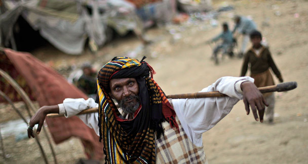Pakistan In Picture (Last Week Of Feb 2010) 15 Attachment(s) Pakistan in pictures In the frame: snake hunter, desert rally, novel punishment and much more across Pakistan. Pakistani Mohammed Shafi, 55, who makes his living by hunting snakes, looks on while seen in a slum on the outskirts of Islamabad, Pakistan. Passengers sit on the roof of a public city bus in the city of Karachi. The sun sets on Larkana. A camel welcomes guests at the inaugural ceremony of National Solidarity sports festival in Rahim Yar Khan. A Pakistani model presents a creation of a local designer Nomi Ansari during a fashion show in Lahore, Pakistan. A television presenter reads verses from the poetry of Parveen Shakir, Pakistan's highly acclaimed poet and writer, during a function in her memory in Islamabad. People walk through snow to attend the funeral of people who lost their lives after an avalanche struck Kohistan. A vendor prepares kites strings ahead of the annual Basant festival. A participant takes off during the qualifying round of the 6th TDCP Cholistan Jeep Rally at Qila Darawar. A total of 88 participants took part in the annual rally that takes place in the Cholistan desert on the outskirts of Bahawalpur. Students perform a dance routine during the annual sports day at Kinnaird College in Lahore. A motorcyclist spins out of control due to slippery conditions in Karachi. Fruit vendors set up shop at a roadside stall in Rawalpindi. Lahore police subject a juvenile offender, caught performing bike stunts on a crowded street, to a novel punishment. Pakistani model Vaneeza Ahmed, accompanied by musicians from the band Strings, walks the ramp during the Lahore fashion week. A daring man precariously tries first hand to solve the riddle, 'why did the chicken cross the road?' on a freight-train crossing in Hyderabad. |