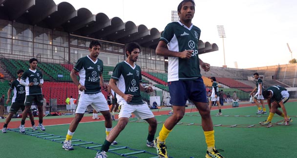 Pakistan prepares for hockey challenge 6 Attachment(s) Pakistan prepares for hockey challenge The Pakistan hockey team left for New Delhi today to participate in the FIH Hockey World Cup 2010 after a four-week training camp in Lahore. Pakistan hockey squad trains at the National Hockey Stadium Lahore. Pakistan trained at Lahore for four weeks in preparation of the World Cup. Pakistan’s last major title was in 1994 at the World Cup in Australia and they finished eighth at the Beijing Olympics in 2008. Pakistan will rely heavily on star centre-forward Rehan Butt (L) for success in the tournament. The green-shirts will take on hosts India in the Cup opener on February 28. After facing India, Pakistan play Spain on March 2, England on March 4, South Africa on March 6 and Australia on March 8 in Group B. |