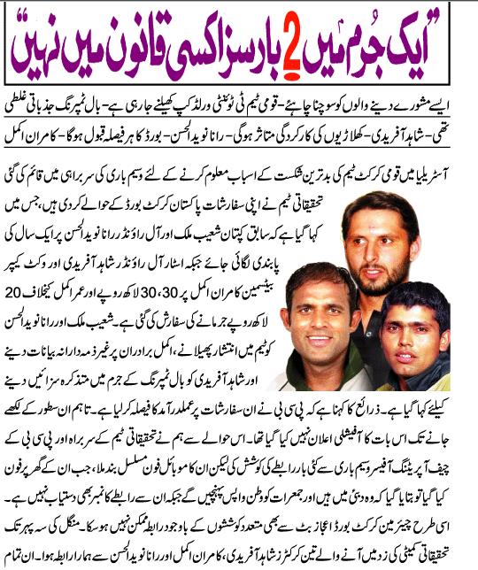 Re: PCB Decission.. match fixing kay chaker main.. Kamran Akmal per to la parwahee ka muzahira kernay ki waja say or Umar per apnay ap ko injured show kernay ki waja say jab kay woh injured nahi tha.. |