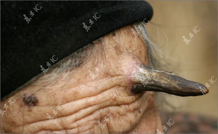 Chinese women with a horn on her head.. 8 Attachment(s) Zhang Ruifang is 100 years old.Last year a horn began growing on her forehead.It doesn’t cause any pain, but looks very strange. Attachment 14663 Attachment 14664 Attachment 14665 Attachment 14666 Attachment 14667 Attachment 14668 Attachment 14669 Attachment 14670 |