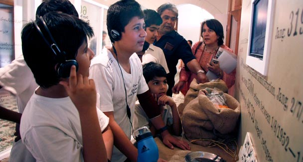 When history comes to life 12 Attachment(s) When history comes to life Pakistan’s early days were brought to life in an exhibition organized by the Citizen’s Archive of Pakistan. Targeted mainly at school children, the exhibition’s main draw was how interactive it was. But it was not only Pakistanis who benefitted, as foreigners too were spotted at Mohatta Palace learning about Pakistan’s stormy Partition days. The exhibition runs till 23 June, 2010 at The Mohatta Palace Museum. This series of photographs is a recollection of people’s experiences at the Birth of Pakistan. “I think this has made my holiday more meaningful because I learnt more about my neighbour’s history. Pakistan and Iran share some history and culture together, so it was good for me and my children to be here. Like when I saw a Farsi-language poem in the exhibition, it was something very familiar to me, so in a way, it is a little like learning about my culture as well.” -Mahmood Ghasmpour, 45, an Iranian on holiday with his family in Pakistan “I feel that the exhibition is really interesting, especially for the young. I’ve been living in Pakistan for 30 years and I’ve seen all its problems but through this exhibition, the young can be reminded again of the hope that had driven the formation of this country. I will definitely bring my Pakistani wife to see it.” -Henri Souffay, 60, from France “Almost all the five senses were being put to use as the children went through the different parts of the exhibition. It was good seeing their sense of wonder for their own history stimulated that way. And even though I’ve lived here for almost 10 years now, I still learnt a thing or two about Pakistan’s history.” -Judith Bradshaw, 48, Pathway School Principal “I am very impressed with the quality and the amazing range offered by the exhibition. The different levels of interaction and hearing directly the voices of the people during the time of the Partition really brought it to life. The exhibition is objective in a way that the audio tapes also include the sentiments of the Hindus and Sikhs who crossed over to India. However, at the section informing visitors about the modes of transportation undertaken by the migrants, they highlighted the perspective of the Muslims that came from India. But overall, there is a lot of attention paid to the details. For an exhibition this size, it covers a lot and is beautifully done.” -Jayanti Durai, 40, lives in London, family got separated during Partition “My friends and I initially were not very interested in Pakistan’s Partition history. I think we are more knowledgeable about the foreign programs shown on TV channels like Disney. But because the exhibition has made it so easy to understand this part of Pakistan’s history, I’m now interested in finding out more even after this visit is over. I might even pay more attention during history class now.” -Neha Syed, 12, The Mama Parsi Girls’ Secondary School student “It was really informative and was interesting to find out about the birth of Quaid-e-Azam Mohammed Ali Jinnah. I feel proud to be a Pakistani because it was created with a lot of hard work. Some of the notes written about the Partition made me and my friends cry.” -Zoha Quraishi, 12, The Mama Parsi Girls’ Secondary School student “My favourite part of the exhibition was the train because I could hear about the story of the mother who lost her child on a train ride. Hearing stories of how the people were killed during the train rides, and how a child should pretend to be dumb when asked if he was a Hindu or Muslim made the Partition a very real experience for me.” -Mohammad Arhum, 11, Pathway school student “It was really informative and was interesting to find out about the birth of Quaid-e-Azam Mohammed Ali Jinnah. I feel proud to be a Pakistani because it was created with a lot of hard work. Some of the notes written about the Partition made me and my friends cry.” -Zoha Quraishi, 12, The Mama Parsi Girls’ Secondary School student “I think this was an exhibition that every Pakistani kid should go to because it would really increase their appreciation for how their country was formed and what their forefathers had to go through to build this country.” -Shahnaz Sethna, Mathematics teacher at the Mama Parsi Girls’ Secondary School “The passports station was really good because taking it home reminds me of this exhibition, and the things that I learnt from it. The passport itself contained a lot of information, such as how the first Pakistani passport came to be and the origin of the National Anthem, both of which I didn’t know about before coming here.” -Humza Khan, 11, Pathway School student “It really brought history to life because the history that I’m learning is very boring. All that I know is read and learn from the books. I liked the replica of the tent the most because I could see the way the refugees lived. I felt sorry for the people because the conditions that they lived in were not good.” -Abdullah Farooq, 10, Pathway School student “I hope to make a difference in the lives of the children who come to visit this exhibition. Out of every 100 who come here, about 20 of them walk away changed.” -Volunteer at the exhibition |
