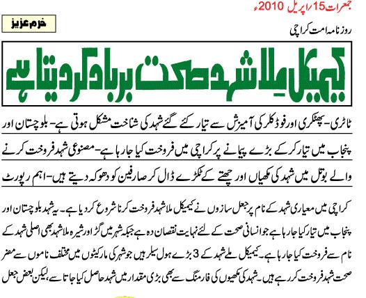 Re: Harmful Honey ; Chemical Mila Shehid Sihat barbaad kerta hay Yups Pakistan main Business ki definition he logon ko dhoka de ker kamana hay, or hamaray business kay saray principles ap ko west main milengay.. |