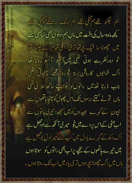 Maan, Hum Jugnu thay hum titali thay hum rang barangay panchhi thay