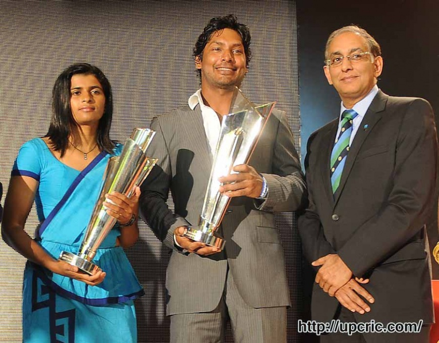Kumar Sangakkara and Shashikala Siriwardene, the Sri Lanka women's captain, with the World Twenty20 trophies in Colombo 1 Attachment(s) Kumar Sangakkara and Shashikala Siriwardene, the Sri Lanka women's captain, with the World Twenty20 trophies in Colombo Attachment 26124 |