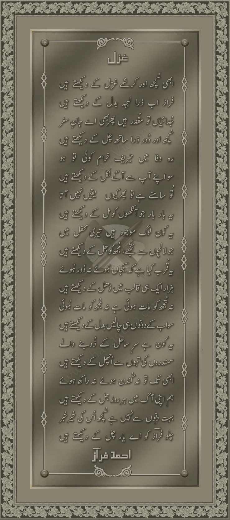 Abhi kuch aur Karishme Ghazal Kay Daikhtay hain Ahmad Faraz